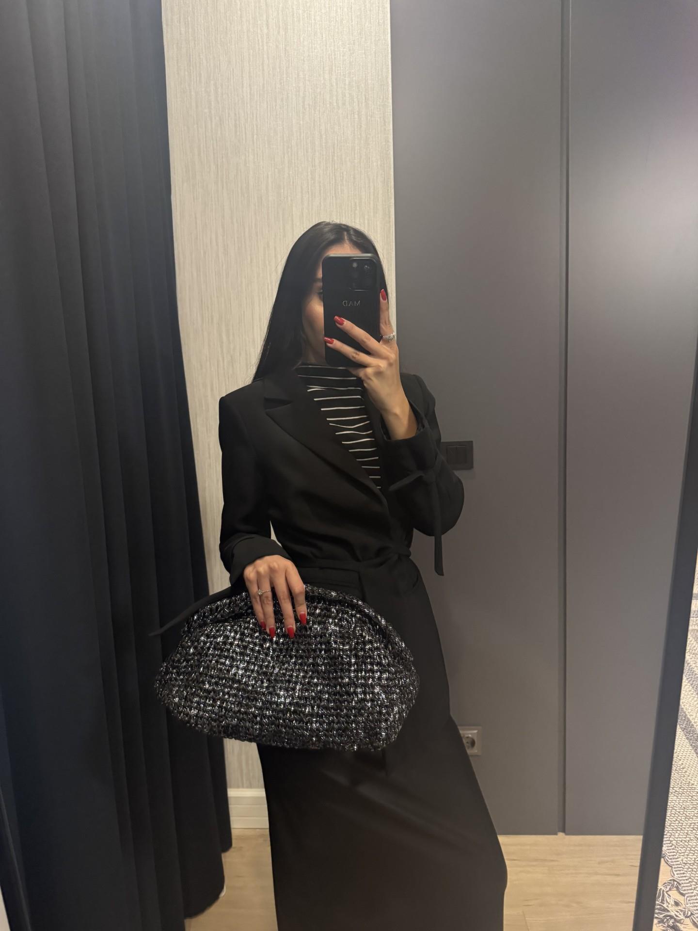 Parlak detaylarıyla dikkat çeken bu zarif el çantası, davetlerden partilere tüm özel anlarda stilinizi tamamlayacak.