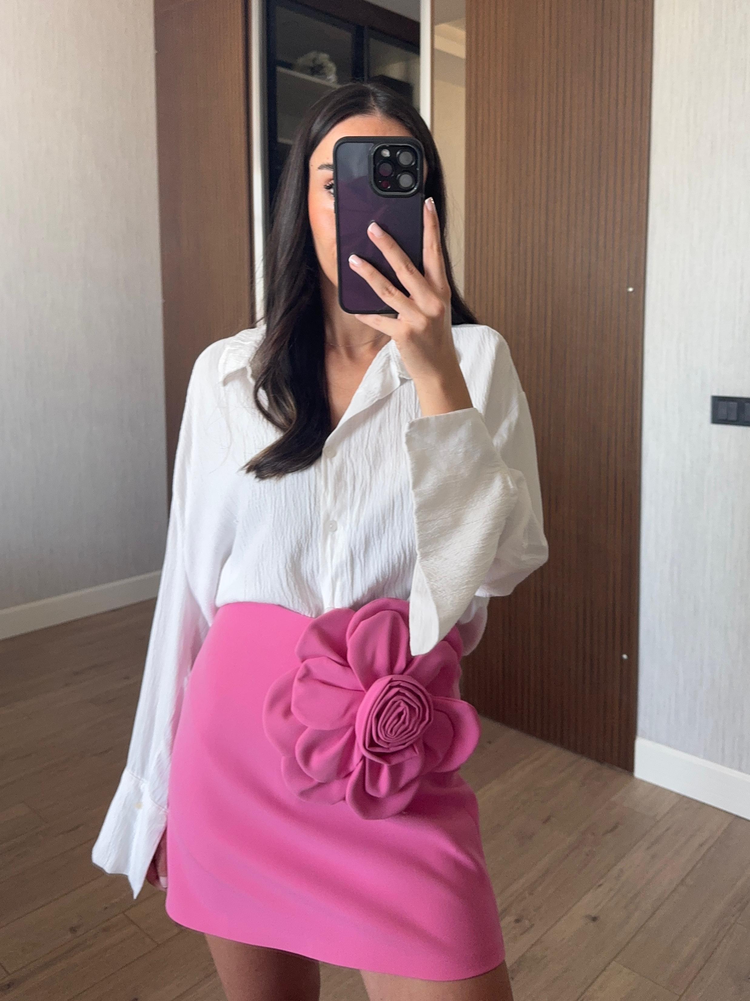 Gardırobunuza baharın en fresh parçasını ekleyin! Çiçekli pembe eteğinizle hem şık hem de enerjik görünebilirsiniz. Sneaker ya da topuklu ile kombinleyin, her stile uyum sağlasın.