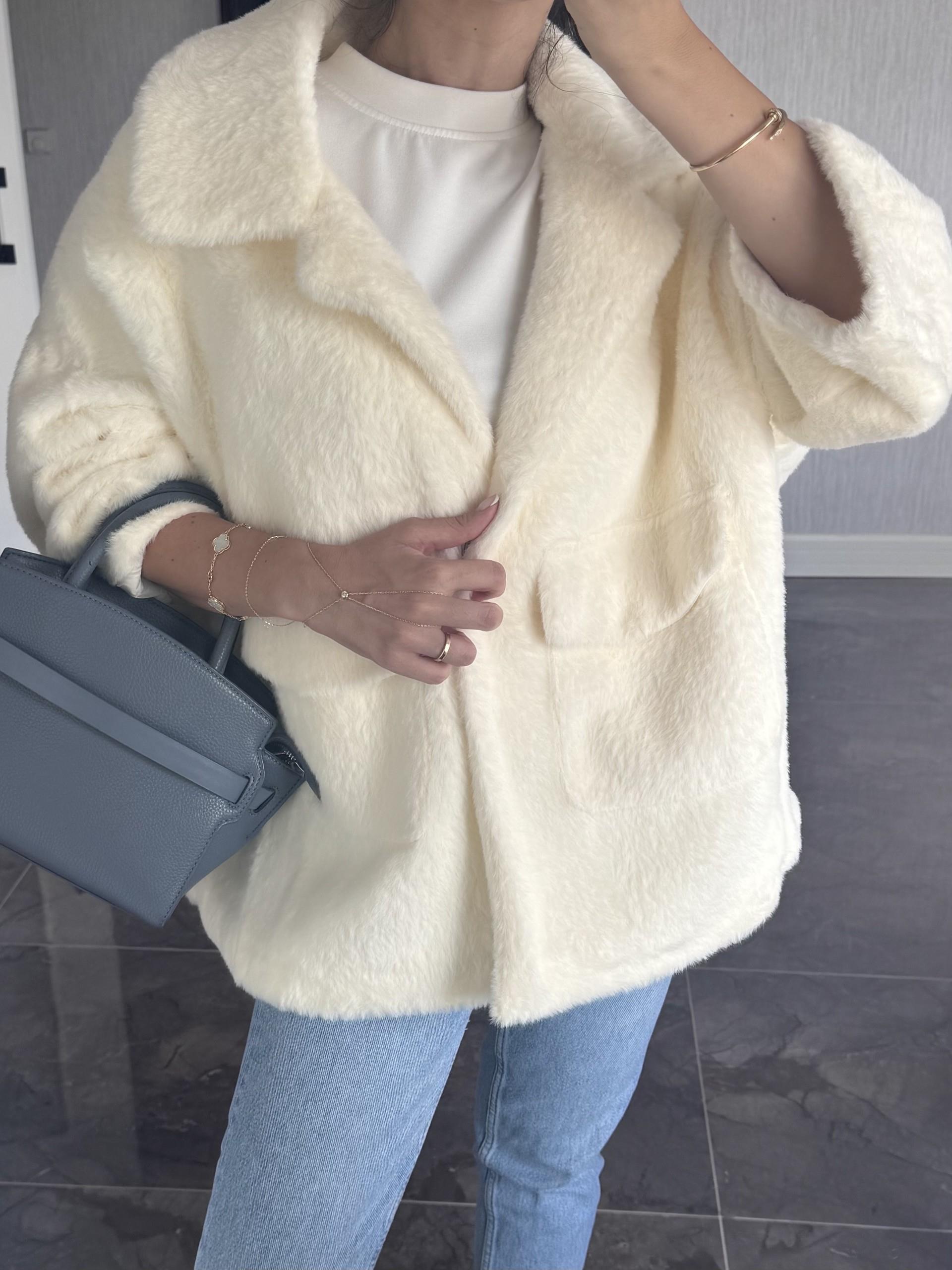 Ekru Cep Detaylı Astarlı Kürk
