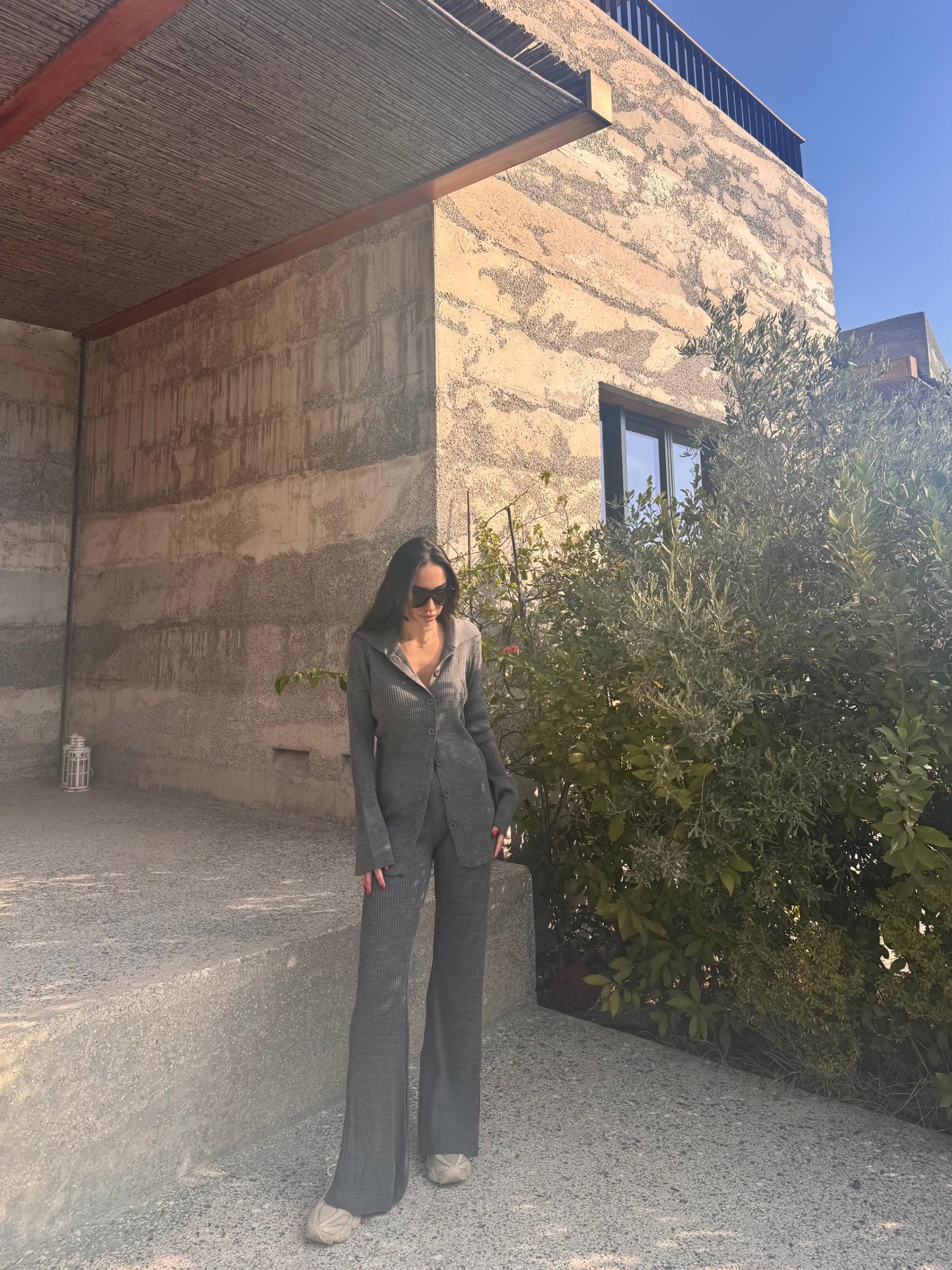 Modern ve şık tasarımıyla öne çıkan gri triko takım, hem rahatlığı hem de zarafeti bir arada sunuyor. Alt ve üst parçadan oluşan bu takımın uzun kollu, önü düğmeli triko üstü; sofistike bir görünüm sağlarken, esnek dokulu triko alt parçası gün boyu konfor sunar. Modern kesimi sayesinde hem günlük kombinlerde hem de ofis şıklığında kolayca tercih edilebilir. Soğuk havalarda sıcak tutan triko dokusuyla öne çıkan takım, sneaker ile spor-şık bir tarza, topuklu ayakkabı ile davetlere uygun sofistike bir stile dönüşebilir. Gardırobunuzda çok yönlü kombinler yaratmak için ideal bir seçimdir.